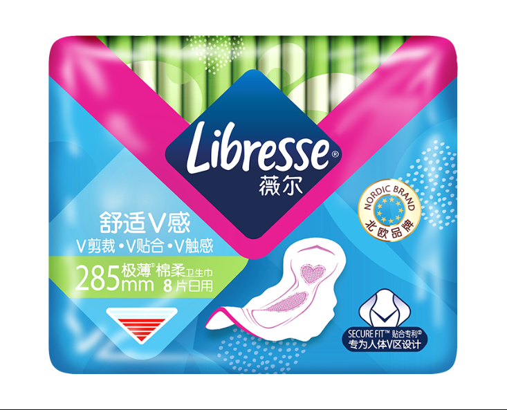 Libresse薇爾舒适V感285加長(cháng)日(rì)用(yòng)8片極薄棉柔衛生(shēng)巾